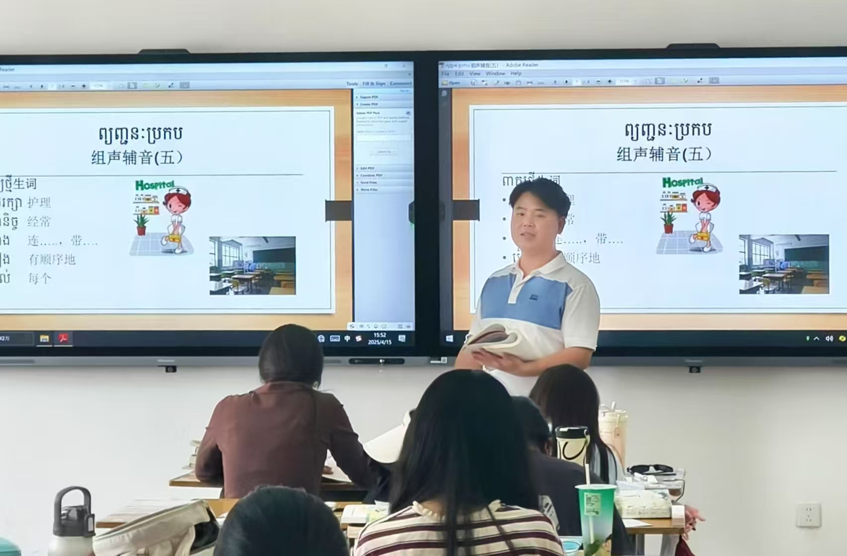 在教学过程中,李金财老师彻底打破传统教学的沉闷与刻板。每一堂课,他都像是一位故事的讲述者,巧妙地将柬埔寨那些鲜为人知却又充满趣味的社会现象、源远流长的文化故事融入到课程内容里。