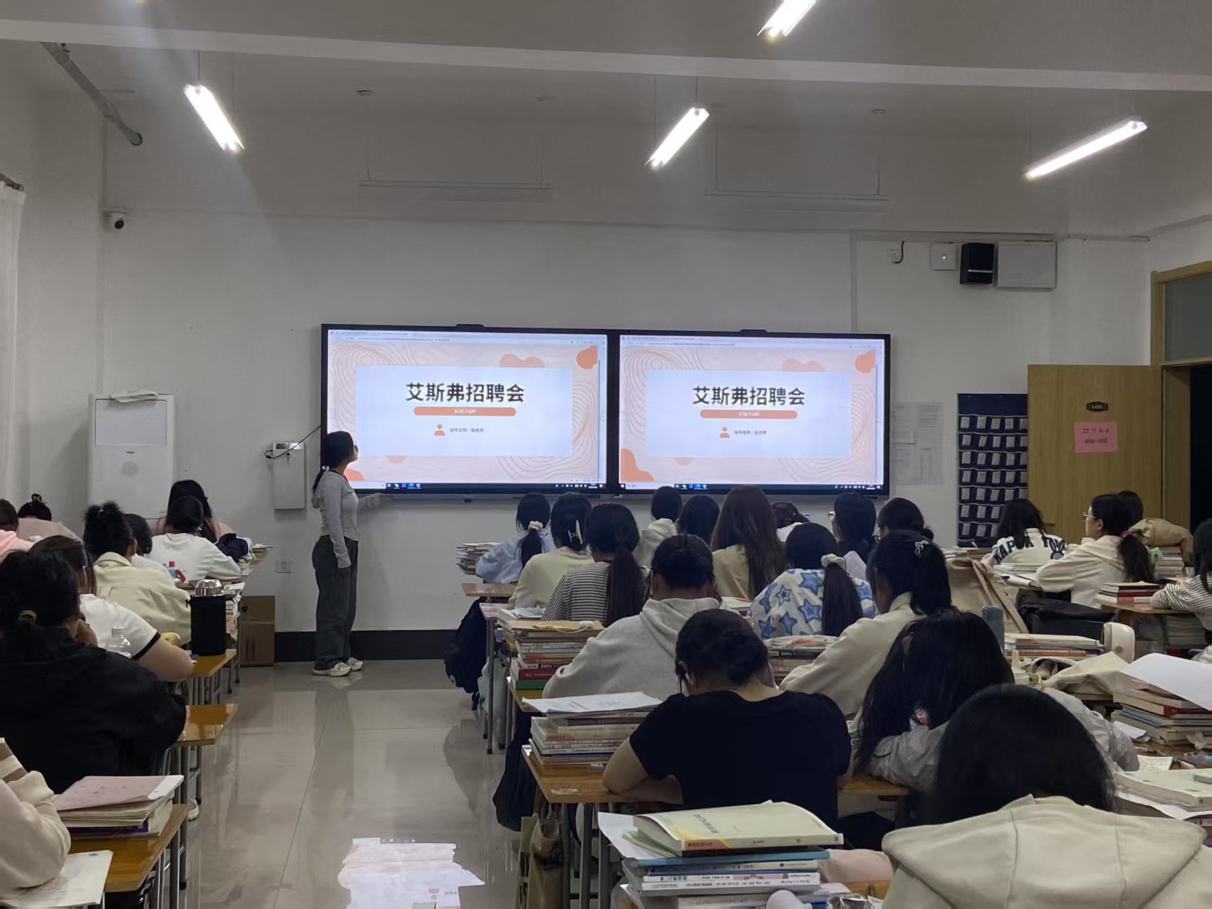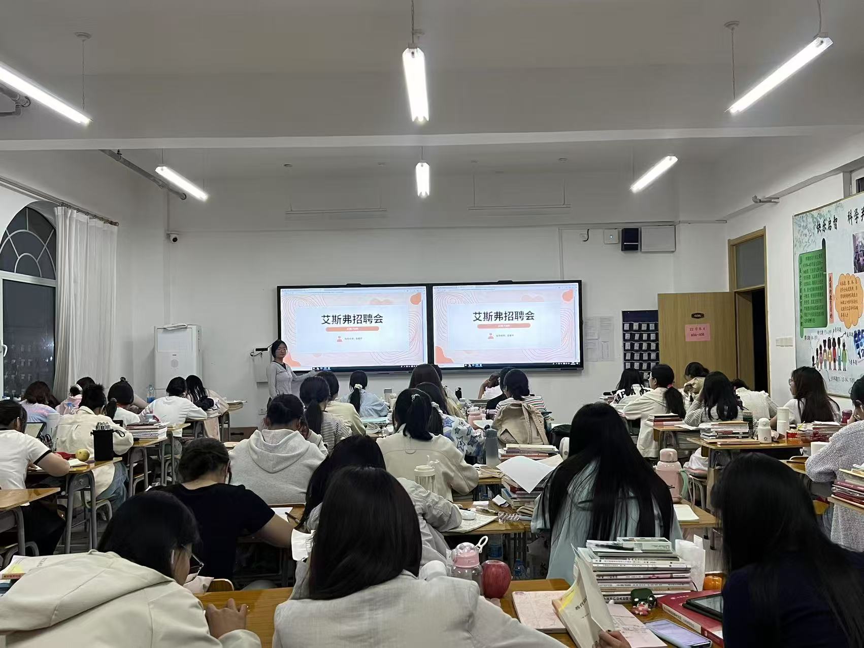 在招聘活动进行时,艾斯弗英语精心筹备了宣讲环节。宣讲开始,负责人通过精心制作的PPT和生动的讲解,带领同学们阐释以创新、专注、服务为核心的企业文化,强调对教学品质的执着追求以及对员工成长的重视。结合实际案例,显示过往学生在实际应用中取得的卓越教学成果,成功吸引了众多学生的高度关注。同学们热情高涨踊跃参与,积极与老师交流,充分展现自身扎实的专业知识功底、独特的教育见解和良好的沟通表达能力等综合素质。