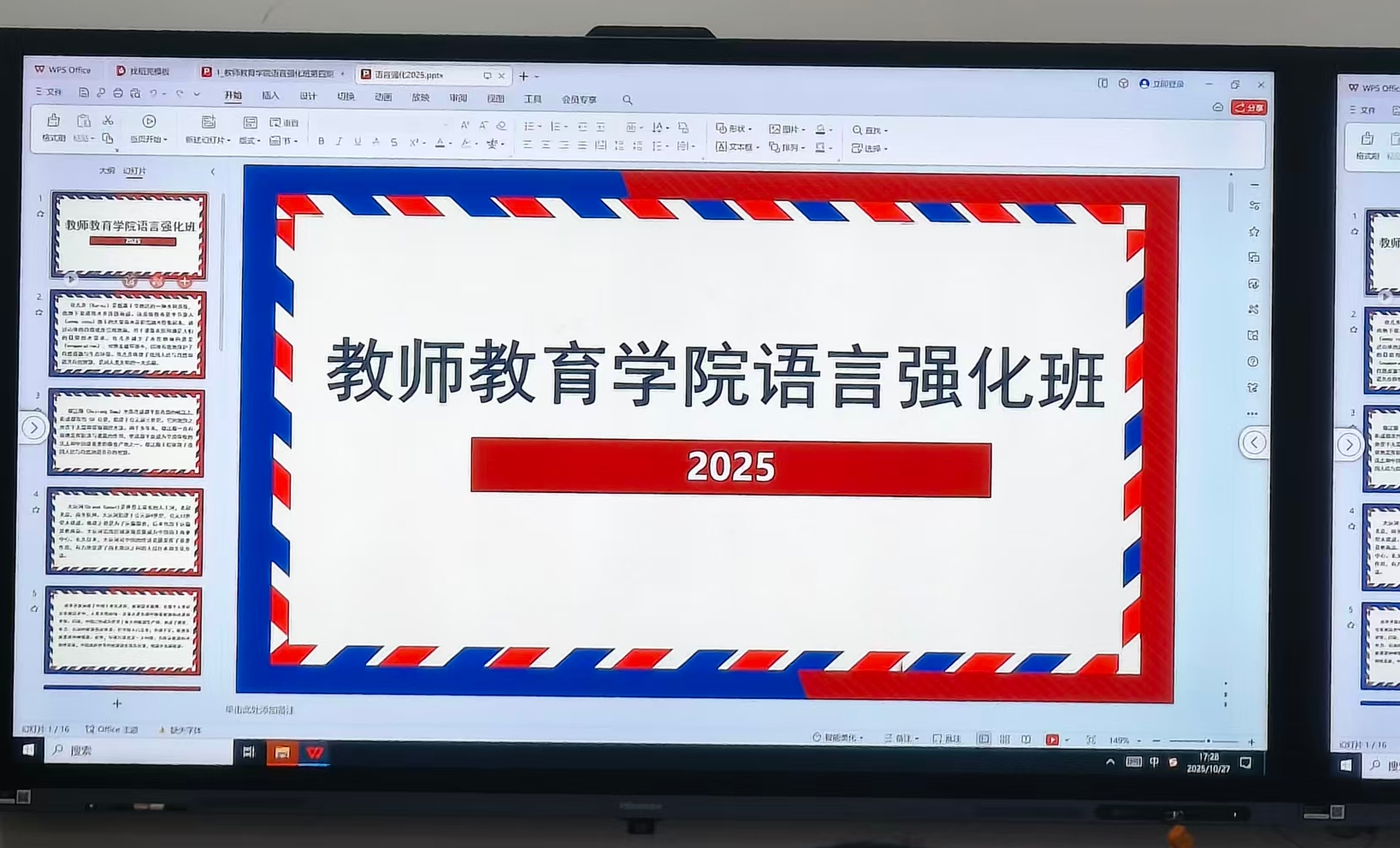 为夯实学生语言素养,提升未来教育教学核心能力,2138CC太阳集团第四期语言强化班于2025年10月27日正式开课。来自学院各班级的学生齐聚一堂,共同开启了一场语言能力提升的成长之旅。
