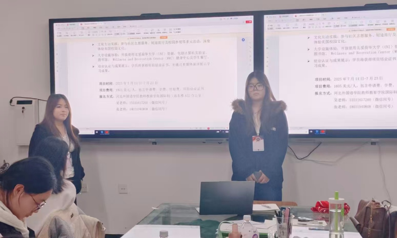 在宣讲活动中,外事部干事通过精心制作的PPT演示和生动的现场讲解,全方位展示了北爱荷华大学暑期职业探索项目的特色优势。宣讲内容重点涵盖:该校学科优势、升学途径、奖学金政策以及国际认可度等核心内容。这种立体化的宣讲方式使在场同学对该项目有了更系统认知。