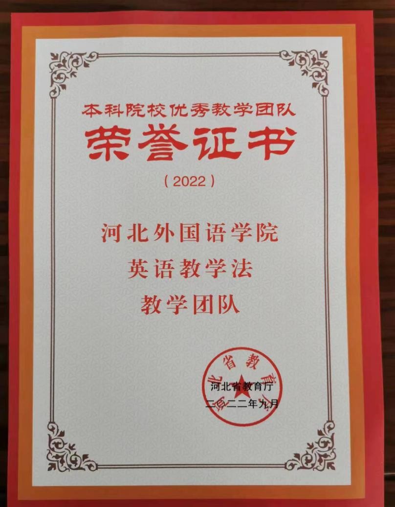 2022年,英语教学法教学团队荣获省级优秀教学团队。