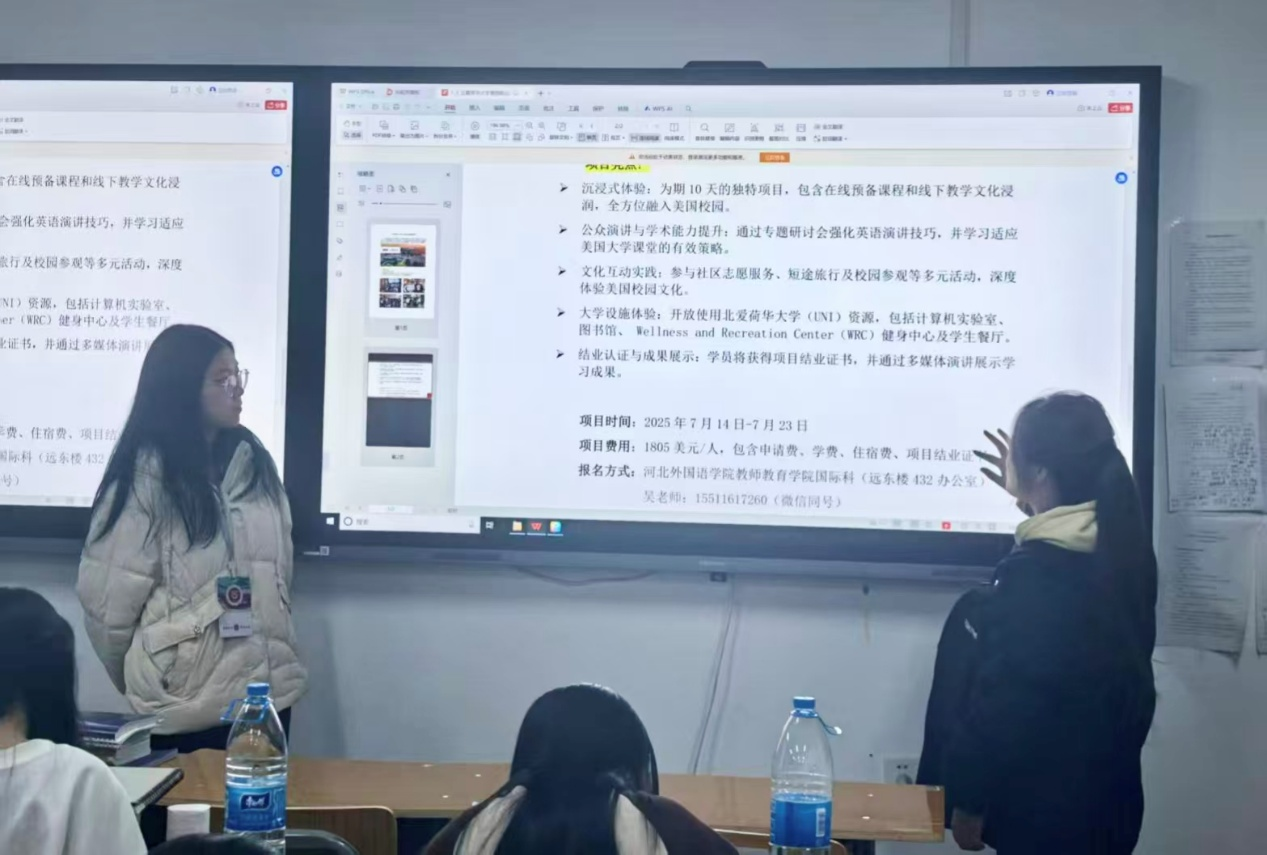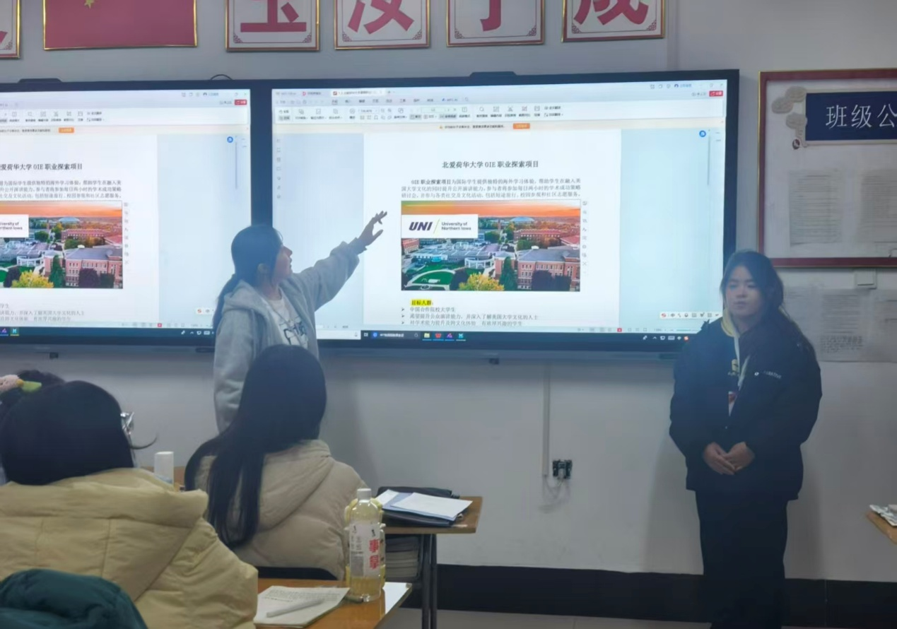 为助力学生拓宽国际视野、提升跨文化核心竞争力,2025年12月8日,2138CC太阳集团外事部干事走进班级,将北爱荷华大学暑期职业探索项目送到学生身边,为意向赴外学习的同学搭建信息桥梁。