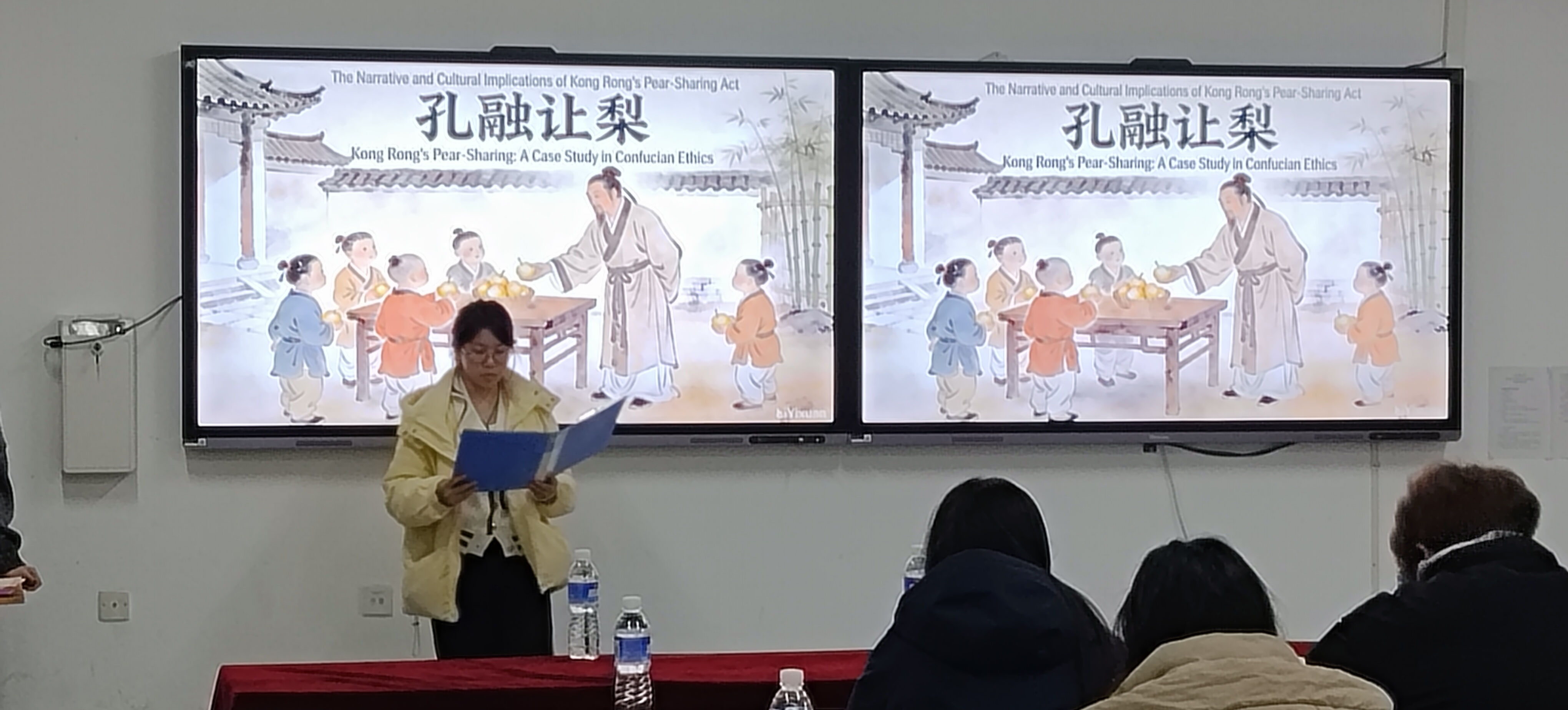 活动前期,曦典军团精心筹备,通过线上通知、自愿报名的形式征集参赛作品,明确活动主题与流程,鼓励成员结合自身兴趣选择英语语种参赛。活动现场氛围热烈,参赛成员依次登台分享,借助清晰的口语表达、自然的情感流露与生动的肢体语言,将一个个故事娓娓道来。有成员选取经典外语寓言故事,用流畅的表达诠释其中蕴含的人生哲理;也有成员分享原创生活小故事,以细腻的笔触讲述成长感悟,展现独特思考能力。